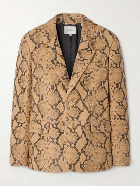 Selon le label FRAME, s’habiller correctement ne devrait pas signifier sacrifier sa personnalité. Ce blazer est réalisé à partir de cuir effet serpent qui a été découpé au laser. Sa silhouette oversize décontractée en fait un modèle résolument tendance.