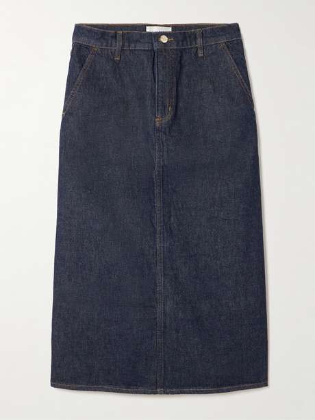 La jupe midi en jean fait partie de ces pièces intemporelles qui se jouent des tendances. Cette version signée FRAME présente une teinte indigo profonde ainsi que des surpiqûres contrastantes. Sa taille haute sera du plus bel effet avec un T-shirt raccourci.