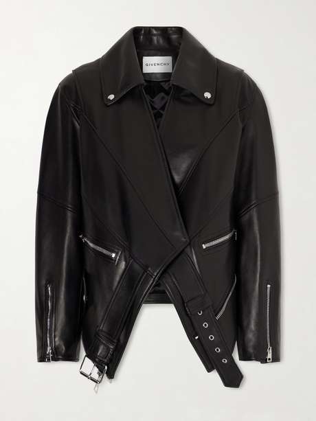 Cette veste Givenchy attirera tous les regards grâce à sa construction inversée originale. Elle est coupée avec précision dans un cuir souple et brillant, et reprend les codes des modèles motards classiques, notamment des sangles ajustables qui vous permettront de moduler sa silhouette asymétrique. Grâce à sa doublure lisse, vous pourrez l’enfiler facilement sur vos hauts.
