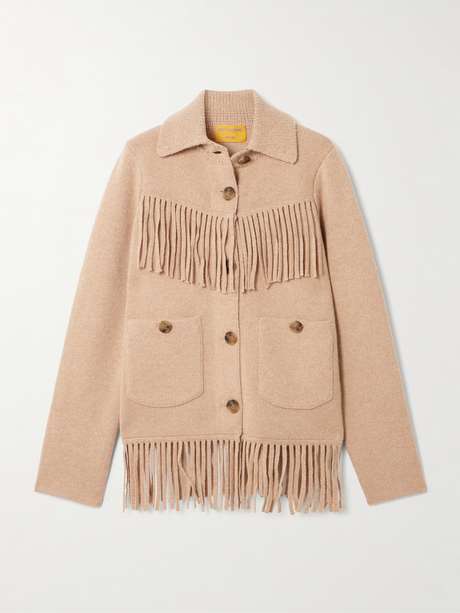 Ce cardigan Guest In Residence, qui reprend les codes des vestes classiques, se caractérise par ses franges d’inspiration western qui rendront tendance n’importe quelle tenue. Il est tricoté en cachemire et présente un col traditionnel ainsi que des poches plaquées.