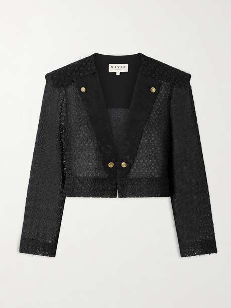 MAISON MAYLE Veste raccourcie en dentelle à finitions en jacquard de soie Rae