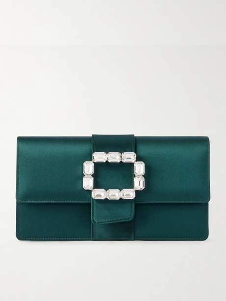 La pochette Maycapjou de Manolo Blahnik se voit décorée d’une boucle illuminée de cristaux scintillants, faisant écho à l’ornement emblématique des chaussures convoitées de la marque. Elle est réalisée en satin, présente une silhouette façon enveloppe et s’ouvre sur un intérieur assez spacieux pour accueillir votre téléphone, des mouchoirs et un poudrier.