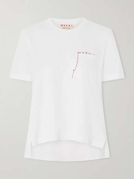 MARNI T-shirt en jersey de coton et en popeline à broderie