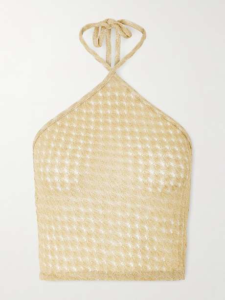 Ce haut dos nu signé Missoni Mare est rehaussé de fils métallisés qui scintilleront joliment à la lumière du soleil. Il est réalisé en mailles crochetées et pourvu de fins liens à nouer à la nuque. Portez-le avec un short en jean lors de vos prochaines vacances.