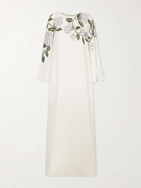 EXCLUSIVITÉ DE NET-A-PORTER. Cette robe du soir signée Oscar de la Renta est minutieusement parée de broderies et d’appliqués en relief dessinant des fleurs plus vraies que nature. Elle est réalisée en crêpe de soie mélangée au tombé fluide, pourvue d’un ourlet caressant le sol et possède des manches trois-quarts fendues ainsi qu’une élégante encolure arrondie. Associez-lui de longs pendants d'oreilles pour attirer les regards sur son motif ouvragé.