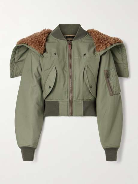 Cette veste signée R13 n’est pas sans rappeler les blousons aviateur vintage. Ce modèle légèrement rembourré est réalisé en tissu technique de coton mélangé. Il adopte une coupe raccourcie et possède des finitions en polaire duveteux qui recouvrent généreusement les épaules.