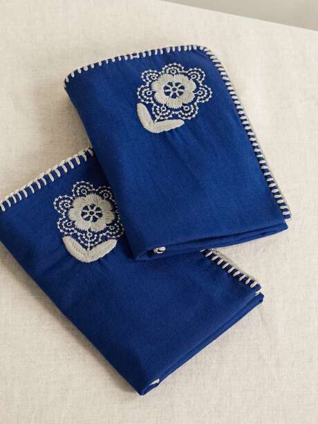 • SEA Set de deux serviettes de table en coton à broderies et à points roulés