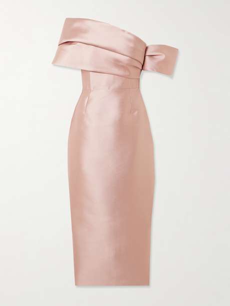 SOLACE LONDON Robe midi épaules nues en faille Mirla