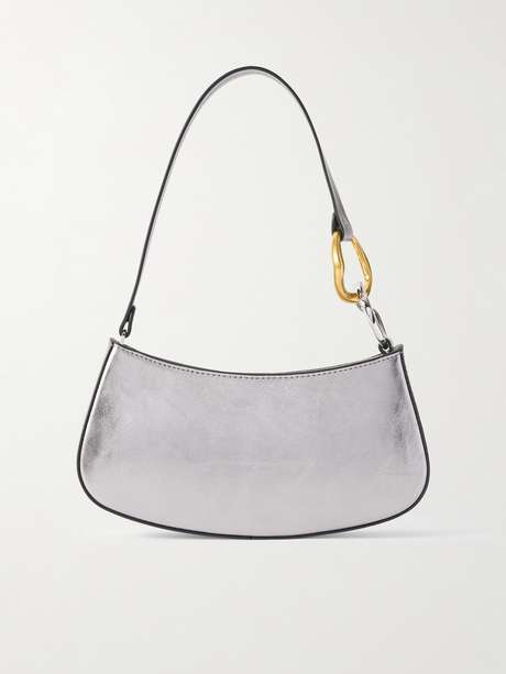 STAUD Sac porté épaule en cuir métallisé Ollie
