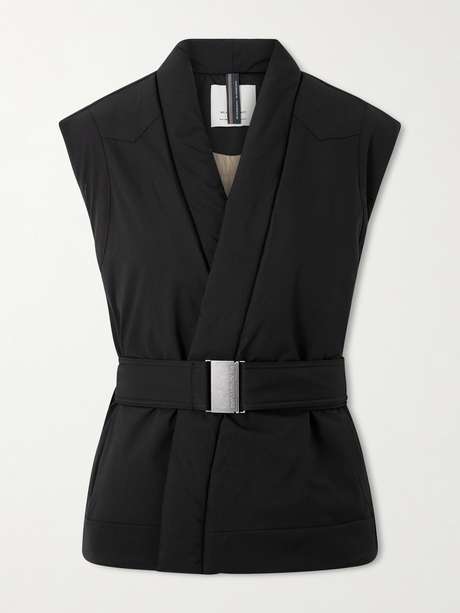 Cette veste sans manches rétro signée We Norwegians est inspirée des vêtements de ski des années 80. Elle est réalisée en tissu technique noir déperlant, parée de franges à l’esprit western au dos et s’ajuste grâce à une ceinture au niveau de la taille.