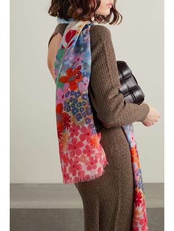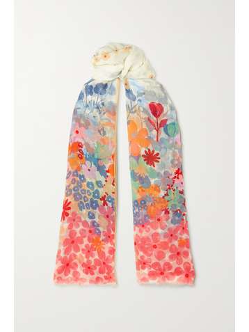 Écharpe en voile de cachemire à imprimé fleuri et à franges La Pergola Fiorita