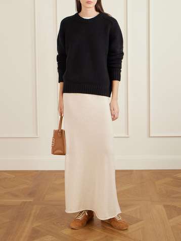 Jupe asymétrique en laine et cachemire mélangés côtelés