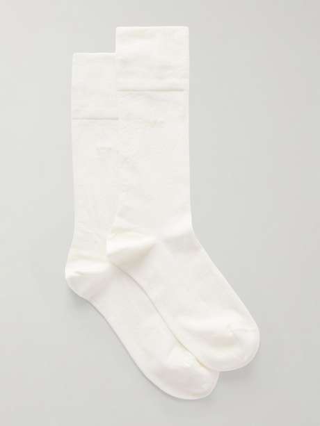 Renouvelez votre collection de chaussettes avec ce lot signé CDLP. Il renferme six paires qui vous arriveront au-dessus des chevilles et qui ont toutes été réalisées en coton mélangé doux et stretch finement côtelé pour qu’elles restent bien en place. Notez leurs logos discrètement brodés.