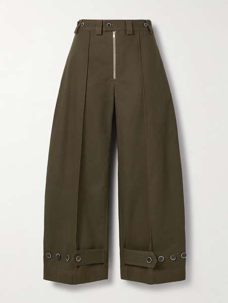 L’amour que porte Christopher John Rogers aux proportions saisissantes se reflète à travers un grand nombre de ses créations, y compris ce pantalon. Ce dernier, dévoilé lors du défilé automne-hiver 2025 de la marque, est confectionné en serge de coton et présente des jambes larges volumineuses équipées de pattes ajustables, lesquelles vous permettront de modifier sa silhouette. Ses ourlets et sa taille sont rehaussés de boutons originaux.