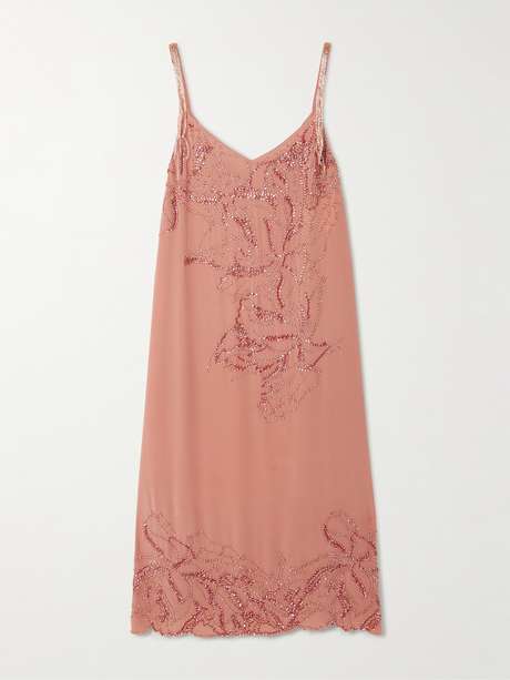 Zoomez pour pleinement apprécier les bretelles et le motif botanique perlés à la main de cette robe Dries Van Noten. Évoquant les nuisettes classiques, cette pièce est réalisée en soie fluide et adopte une silhouette droite simple.