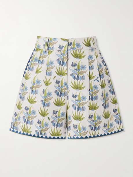 EMPORIO SIRENUSE Short en lin et coton mélangés à imprimé fleuri et à plis Beatrice Celestine
