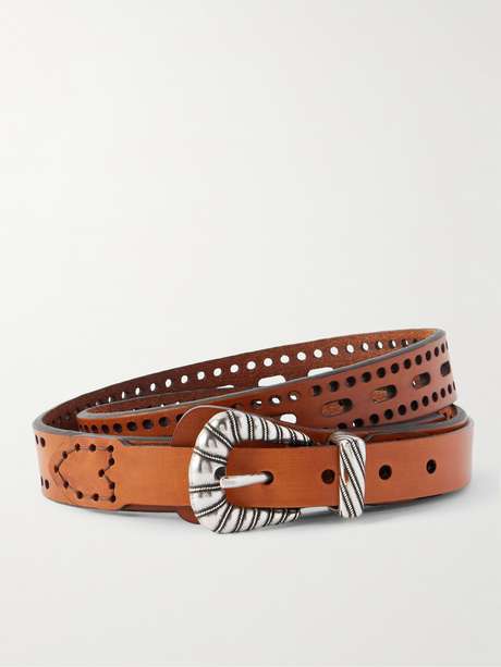 Cette ceinture d’inspiration western que signe Etro s’attache grâce à une boucle en métal argenté à l’effet vieilli, soigneusement gravée de rayures. Elle a été réalisée en Italie à partir de cuir et se voit rehaussée de découpes originales.