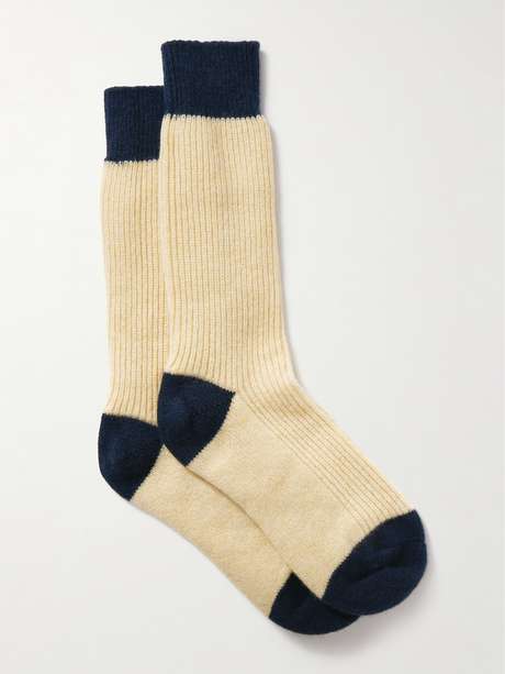 Ces chaussettes de Guest in Residence sont tricotées à partir d’un cachemire infiniment doux et dotées d’un fini côtelé ainsi que de bouts renforcés. L’association de leurs deux couleurs leur confère une allure rétro et tendance.
