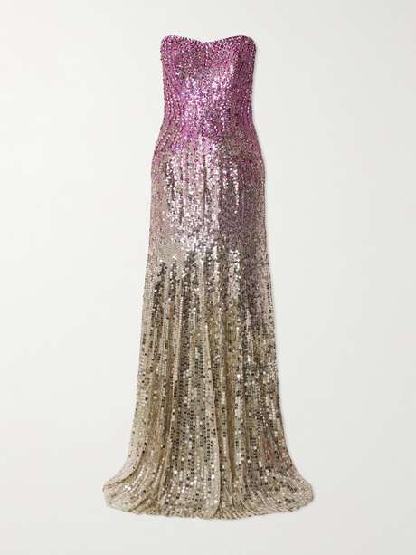 JENNY PACKHAM Robe du soir bustier en mousseline ombrée à sequins Lior