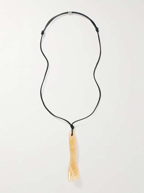 LEMAIRE Collier en cuir et aragonite Gua Sha