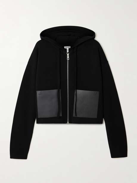 LOEWE Sweat à capuche en laine mélangée à finitions en cuir