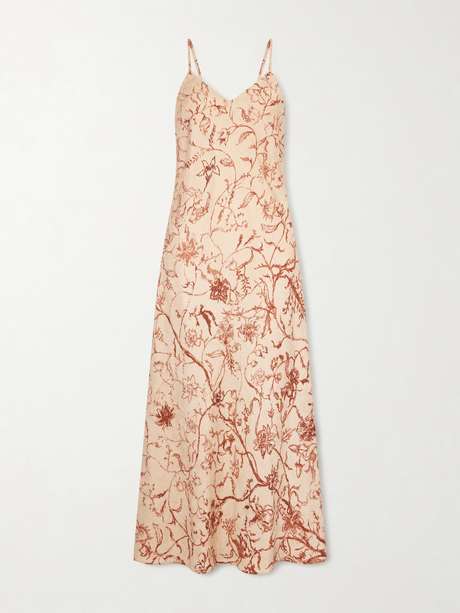 Cette robe en jacquard de Loro Piana vous séduira par son élégance sobre et ses détails minutieux. Elle est réalisée en soie légère, s’habille de motifs fleuris raffinés et présente une silhouette midi fluide. Associez-la à des talons épurés.