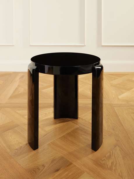 Les objets pour la maison de LOUISE ROE témoignent d’une approche expérimentale en matière de design, qui s’inspire des débuts du mouvement Art déco, du Bauhaus et du brutalisme des années 30. Ce tabouret a été fabriqué à la main au Portugal à partir de bois d’hêtre au vernis noir, et présente trois pieds ainsi qu’un siège circulaire.