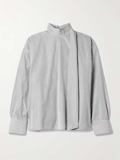 Pour Maria McManus, la simplicité est la clé de l’affirmation de soi, c’est pourquoi elle crée des pièces chic et sobres qui vous feront rayonner d’assurance. Ce haut rayé est réalisé en popeline de coton biologique et agrémenté de liens fixés à son col, que vous pourrez placer de différentes manières. Associez-lui le pantalon coordonné, à retrouver également sur nos pages.