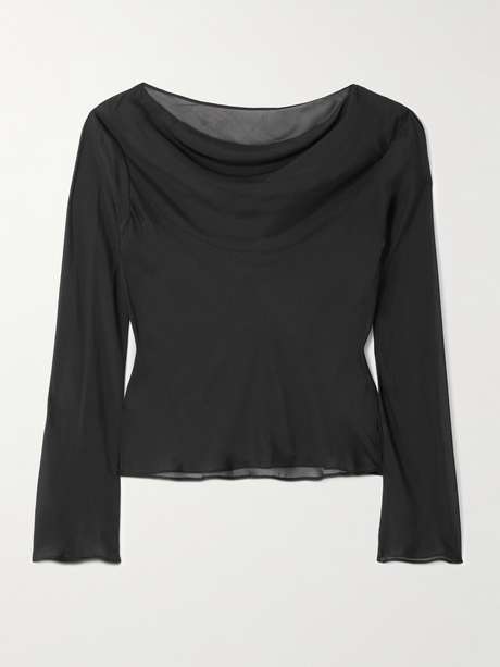 Ce haut signé SIR. est réalisé en mousseline de soie légère et transparente : associez-lui donc une brassière ou un caraco ton sur ton. Il affiche une encolure élégante et délicatement drapée, ce qui lui apporte une touche de relief subtil. Portez le vôtre avec des pièces de tailleur ton sur ton ou un jean.