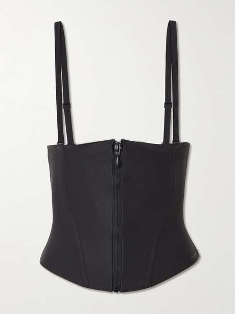 Ce serre-taille de SKIMS est conçu pour vous dessiner une silhouette en sablier. Il est réalisé à partir du tissu stretch signature de la marque, agrémenté de baleines pour davantage de structure et possède des bretelles ajustables amovibles.