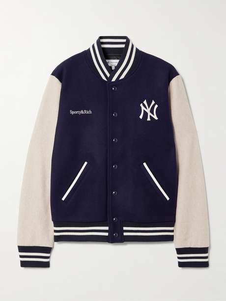 Ce blouson Sporty & Rich a été conçu en collaboration avec les New York Yankees et se pare d’une broderie reprenant le logo de la célèbre équipe de base-ball. Il est réalisé en feutre de laine, et doté de manches et de rayures contrastantes, ce qui évoque les modèles universitaires vintage. Sa doublure matelassée est quant à elle particulièrement douillette.