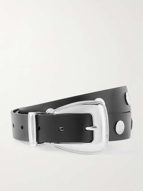 Cette ceinture The Frankie Shop est fabriquée en cuir souple, ponctuée de clous argentés et dotée d’une boucle assortie d’inspiration western. Glissez votre T-shirt à l’intérieur de votre pantalon pour mettre en lumière ses détails étincelants.