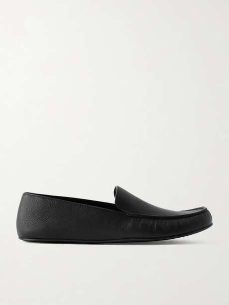 Le modèle Leo de The Row est inspiré des mocassins à picots classiques. Il est réalisé en Italie à partir de cuir texturé noir et se voit rehaussé de surpiqûres ton sur ton. Portez-les aussi bien avec un jean qu’avec une pièce de tailleur.