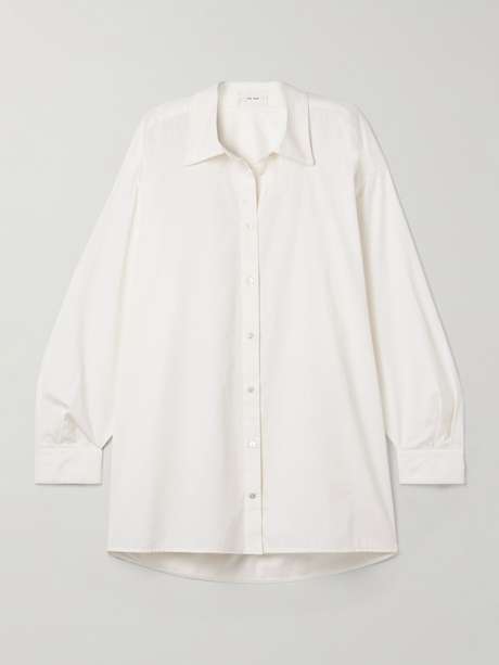 Pour Mary-Kate Olsen, l'une des fondatrices de The Row, un vêtement de grande qualité rend la vie plus aisée, et c'est pourquoi le label s'attache à proposer des pièces à la fois élégantes et faciles à porter en toute occasion. Sa chemise Luka en est d'ailleurs une parfaite démonstration. Elle est réalisée en Italie en serge de coton et de cachemire mélangés et adopte une belle coupe oversize mise en valeur par des emmanchures basses. Associez-lui un jean ou un pantalon de tailleur, en prenant soin de laisser quelques-uns de ses somptueux boutons en nacre ouverts pour une allure plus décontractée.