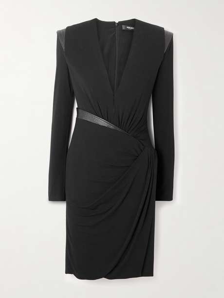 Cette robe Versace a fait sensation lors du défilé automne-hiver 2025 de la maison, une collection qui rend hommage à son style rock et opulent emblématique. Elle est réalisée en jersey stretch soigneusement drapé, et dotée de finitions en cuir au niveau de ses épaules structurées ainsi que de sa taille. Mettez en lumière son décolleté plongeant en lui associant un long collier ou une chaîne de corps.