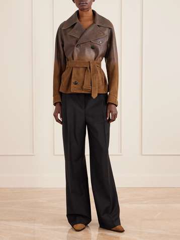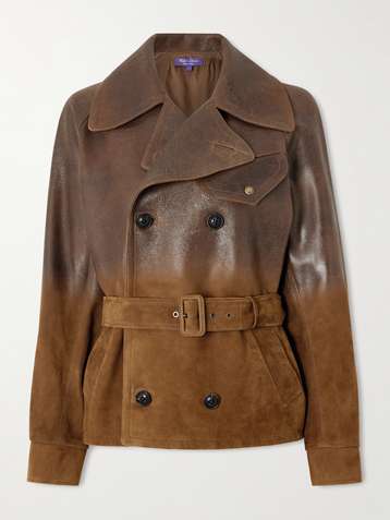 Giacca doppiopetto in pelle dégradé con cintura Eldridge