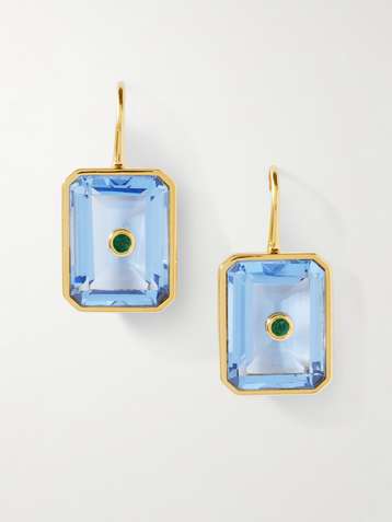 Orecchini con finitura oro, cristalli e smeraldi Tile