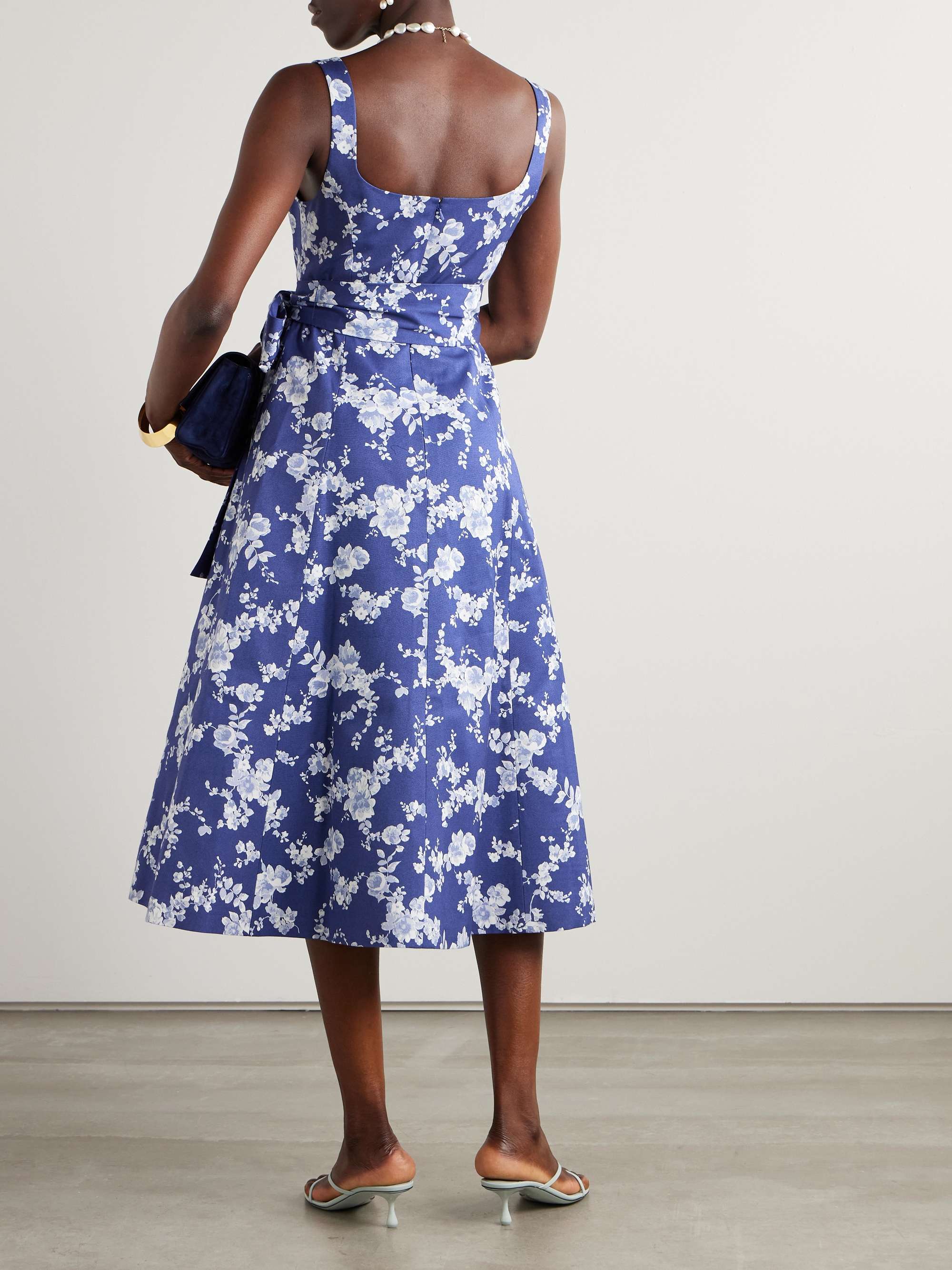 CAROLINA HERRERA Abito midi in faille floreale con cintura