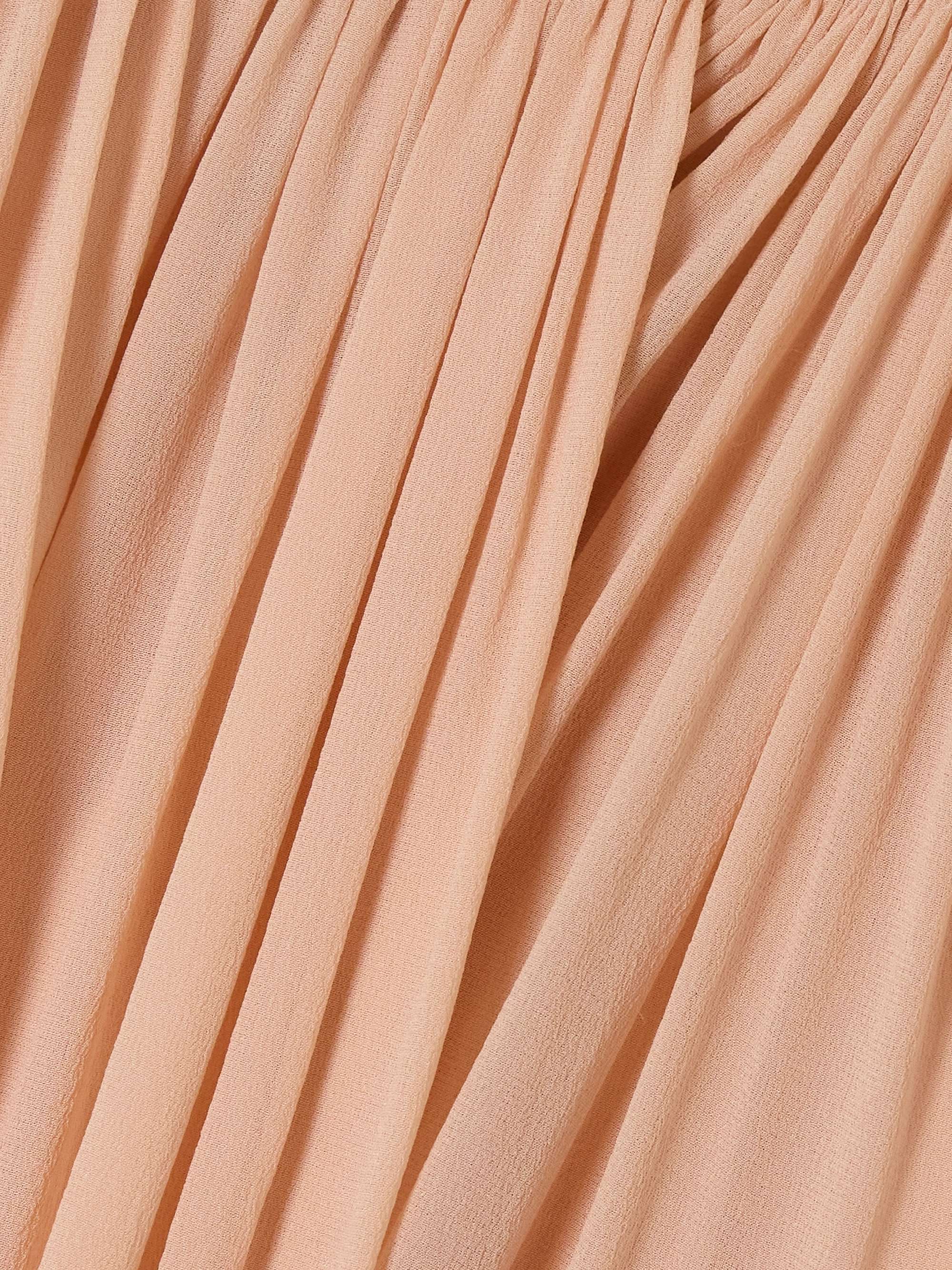 CHLOÉ Abito midi asimmetrico a collo alto in georgette di seta arricciato effetto portafoglio