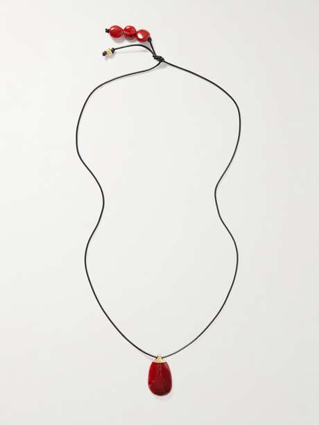 DINOSAUR DESIGNS Collana in pelle e resina con finitura oro River Rock