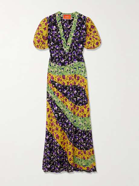 LA DOUBLEJ Abito maxi in crêpe di seta stampato Marlene