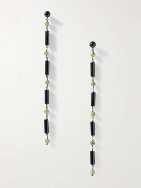 LE SUNDIAL Orecchini rodiati con giada e onice Jackie