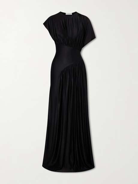 RABANNE Abito maxi asimmetrico in raso arricciato