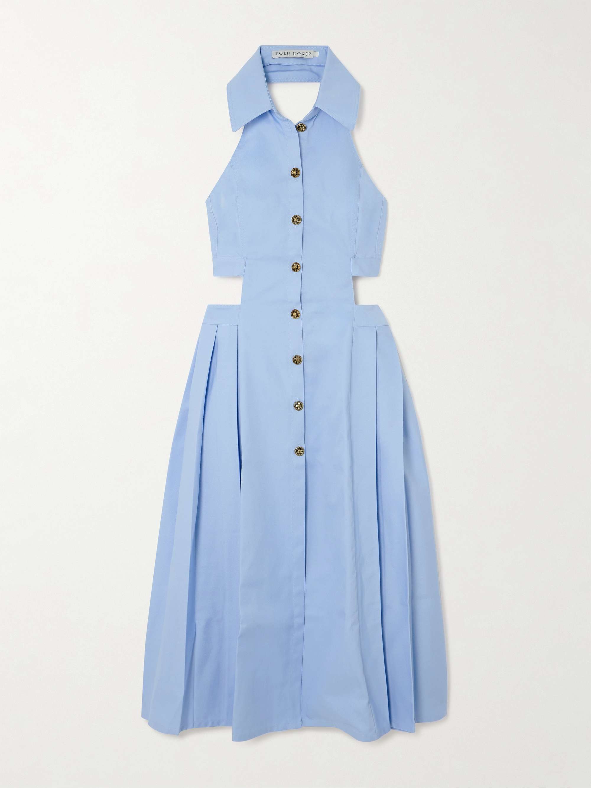 TOLU COKER Abito chemisier midi a schiena scoperta in gabardine a pieghe