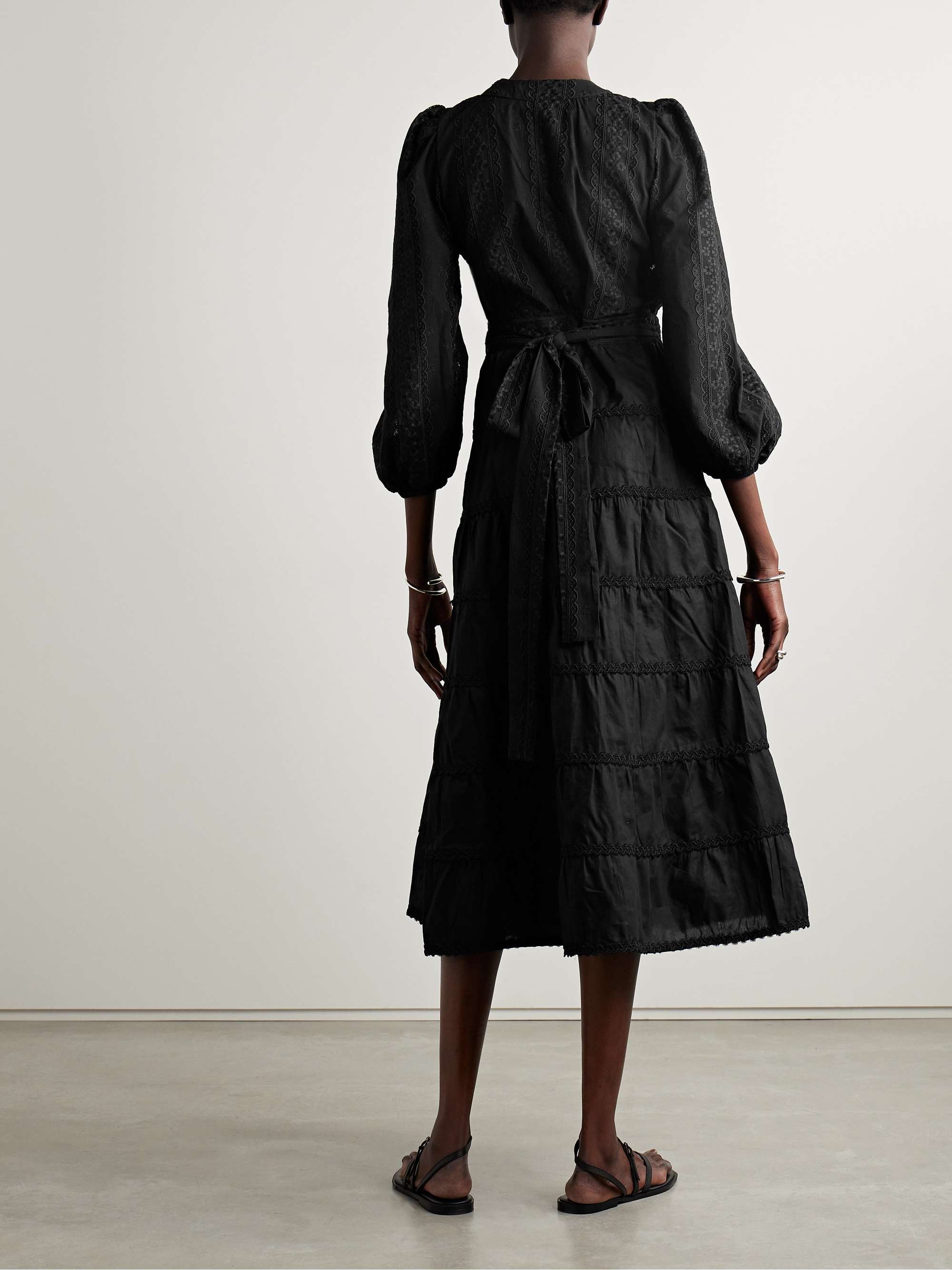 WAIMARI + NET SUSTAIN Abito a portafoglio in misto cotone ricamato con finiture in pizzo Aurora