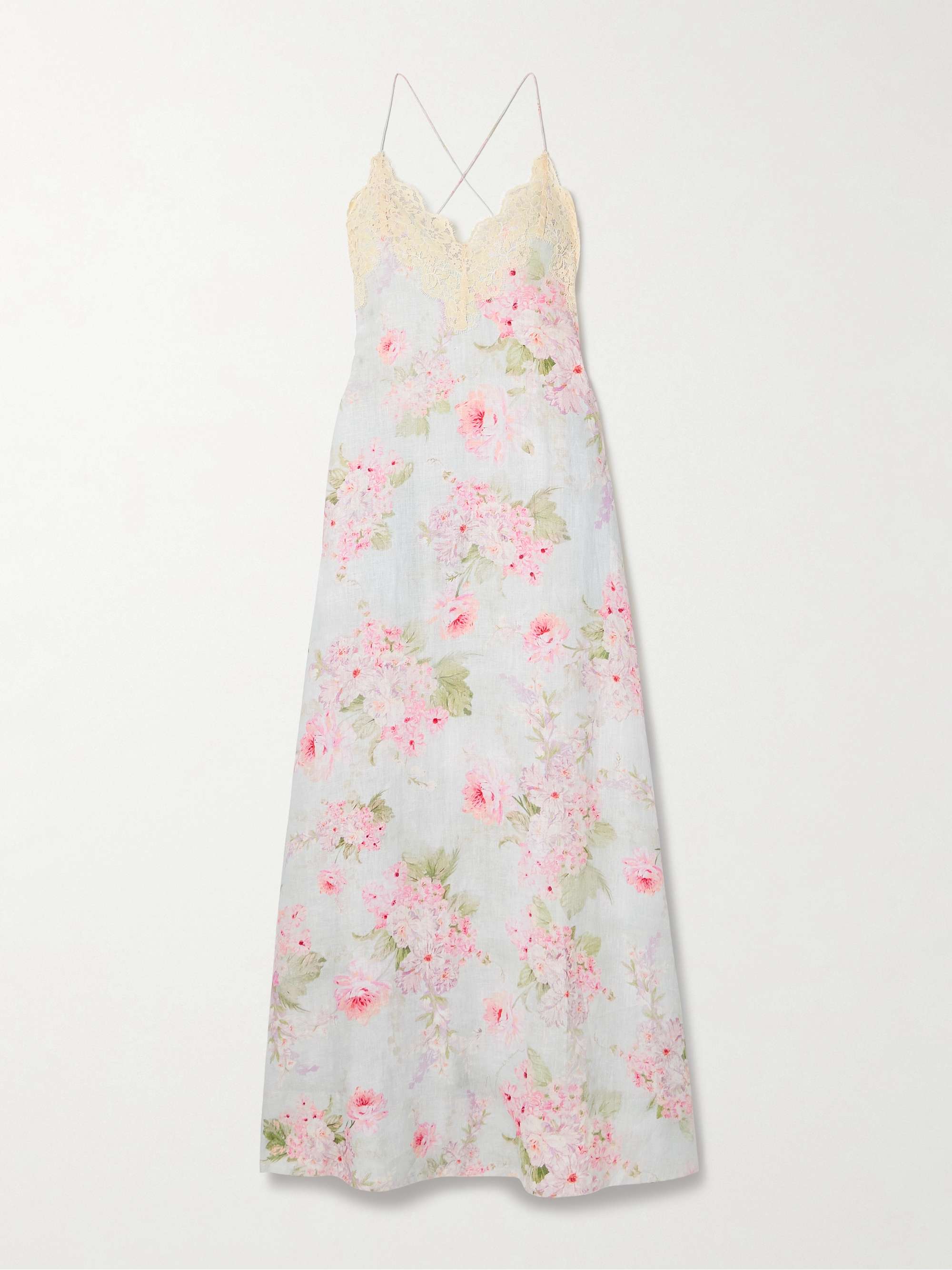 ZIMMERMANN Abito maxi in lino floreale con finiture in pizzo Halliday