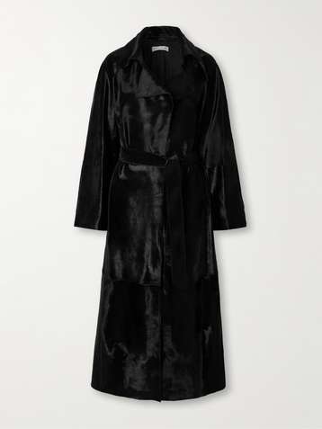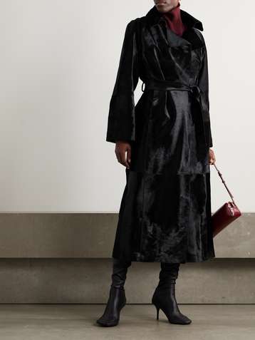 + NET SUSTAIN レザー コート ムートントリム ベルト付き