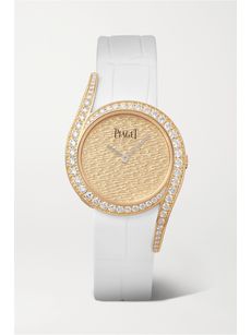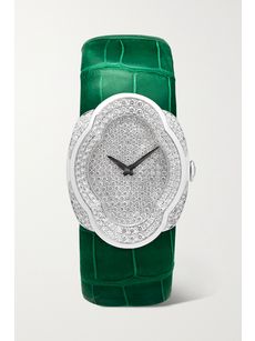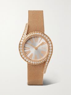 When looking to invest in a diamond timepiece, the first step is to assess what level of adornment you want to achieve. For sheer, unadulterated razzle dazzle, they don’t come much more frosted than Vacheron Constantin’s ‘Egérie’. Set with a blinding four karats, this is the ultimate timepiece for those drawn to lustrous jewels, yet the taupe satin strap ensures it doesn’t feel too blingy. “It’s interesting that we are now starting to see changeable straps at every level of fine watchmaking,” says Edwina Hilton, fine-jewelry and watches buyer at NET-A-PORTER. “This watch comes with an additional brown alligator strap, so the satin version can be saved for special events, while the leather one brings a daytime aesthetic to the bejeweled dial,” she says.