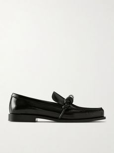 Elsewhere, brands have added slick, contemporary details to the nostalgic silhouette. Jil Sander’s slip-on loafers, for instance, are topped with hand-knotted detailing and gold rings, while Gabriela Hearst’s square-toe ‘Aveda’ loafers come with contrasting suede panels. Wear them with a midi skirt and ankle socks or slouchy, wide-leg jeans.