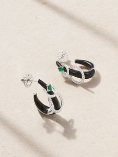 NIKOS KOULIS18-karat white gold, enamel, diamonds and emerald hoop earrings